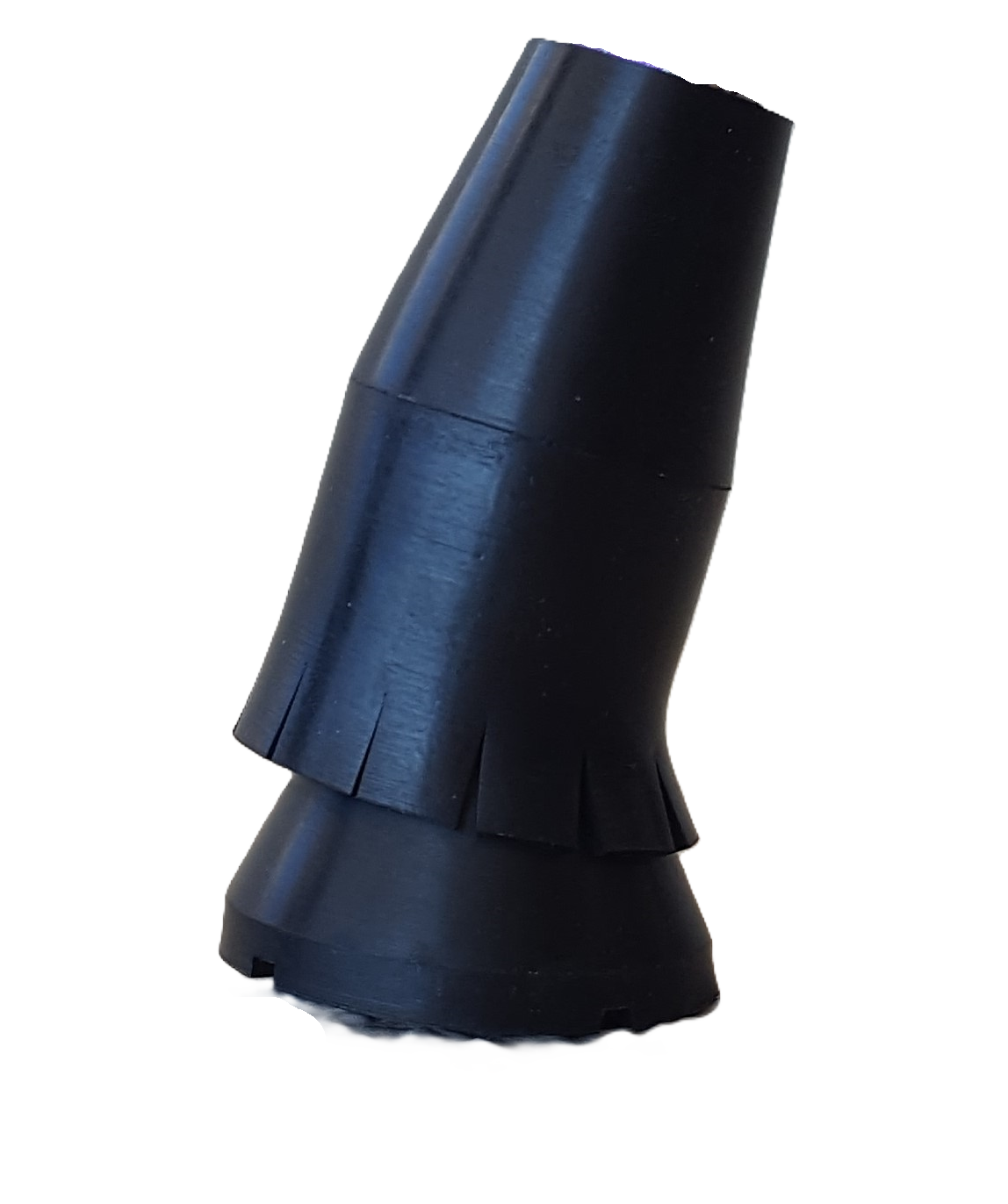 見た目だけではなく、高機能の杖先ゴム「ラクーン」をセットアップした杖は、